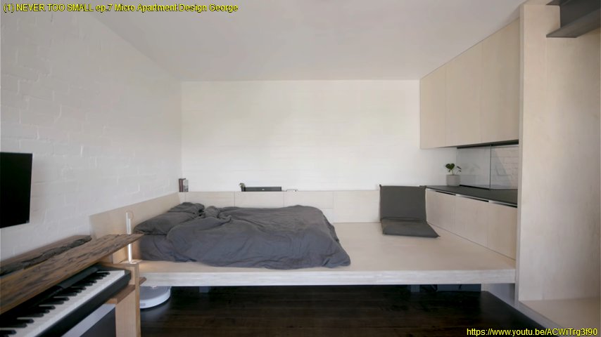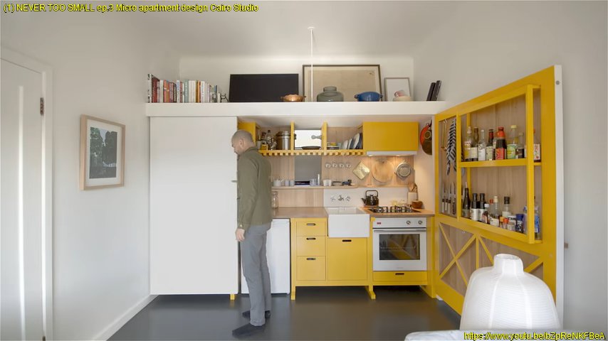 - Un mur entièrement fait de rangements, notamment un lit qui se déplie du mur, pour éviter d’avoir une chambre